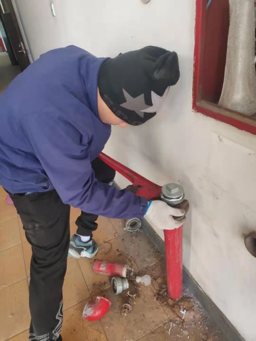 2021年新年伊始,受强冷空气南下的影响,北京地区最高气温跌至零下18度,伴随7级大风产生的风寒效应,更加寒冷,北京市预警中心先后发布寒潮蓝色预警、持续低温蓝色预警、大风蓝色预警。1月4日早上7时,集团公司供水管道系统和消防供水设施,在不同地点因低温冰冻造成多处阀门破裂,自来水从漏点大量外泄,直接影响公司正常供水,更为严重的是,供水事故将直接影响公司采暖锅炉的安全运行,如果供水水压持续下降,锅炉会因不能正常补水而停止运行,在这种极寒天气中,一旦停止供暖,会直接影响公司及各级单位的正常办公经营工作,最大的危险是,极限低温如果造成锅炉供暖管道自身结冰,将会造成更大供暖事故以及不良社会影响。在这种急迫的情况下,物业经营部迅速启动应急抢修工作预案,部门领导统一协调,维修班组在班长的带领下,迅速到达各事故地点,进行紧急处置。为了不影响锅炉运行及各单位正常供水,维修班师傅们不顾零下十几度的低温,采用了冬季最辛苦的“带水”检修的工作方法进行维修工作。维修工作现场,他们不畏严寒,争分夺秒。管道安装都是隐蔽工程,地方狭窄,为了方便更换零配件,维修班的三位师傅不顾严寒,脱掉棉服,跪在地上将双手伸到满是冰碴的水中进行抢修,拧接头、换截门、连接水管……整个过程持续了近4个小时。溅到师傅们身上的水很快就结成了冰,他们却毫无察觉。抢修完成时,每位师傅冻的通红的双手抖的已经拿不住喝水的茶杯。